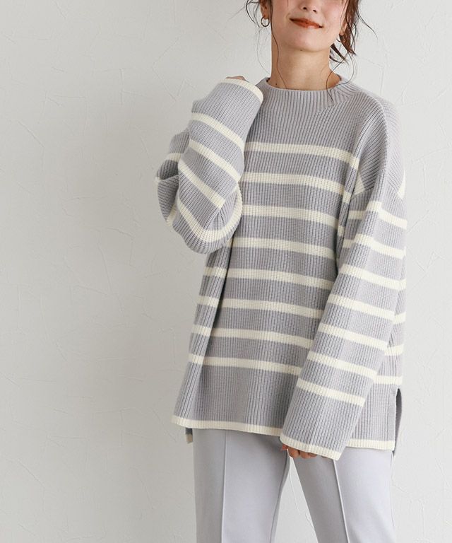 【アウトレットSALE!】ボトルネックパネルボーダーニット【スピード配送】