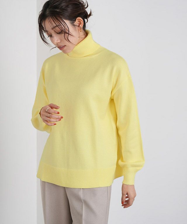 女性らしさ溢れる“ボリュームスリーブタートルネックニット”