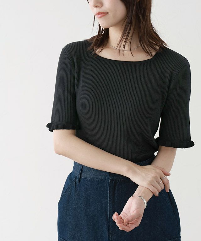女性らしさ引き立つ“リネンタッチ袖フリルリブニット”