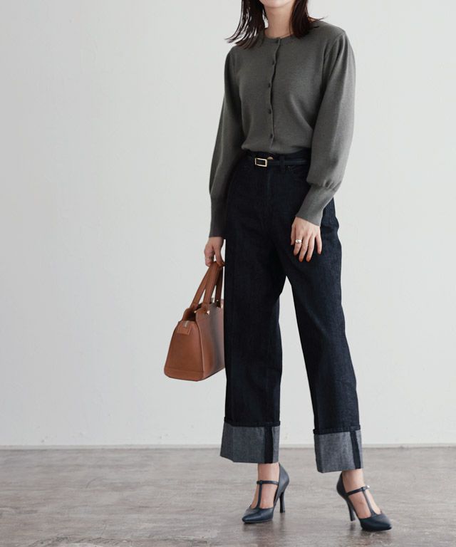 旬な印象に導く“ボリュームスリーブニットカーディガン”
