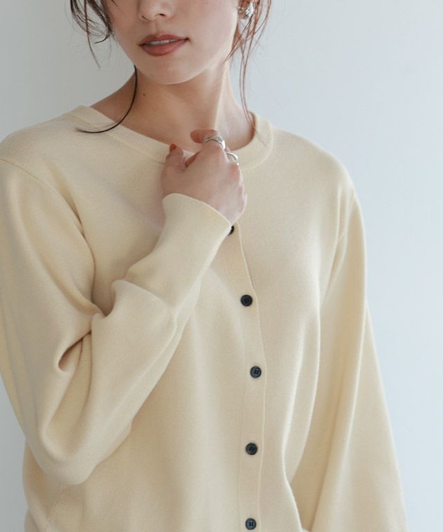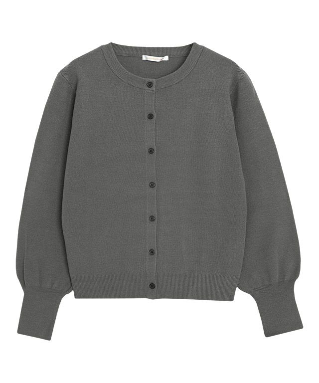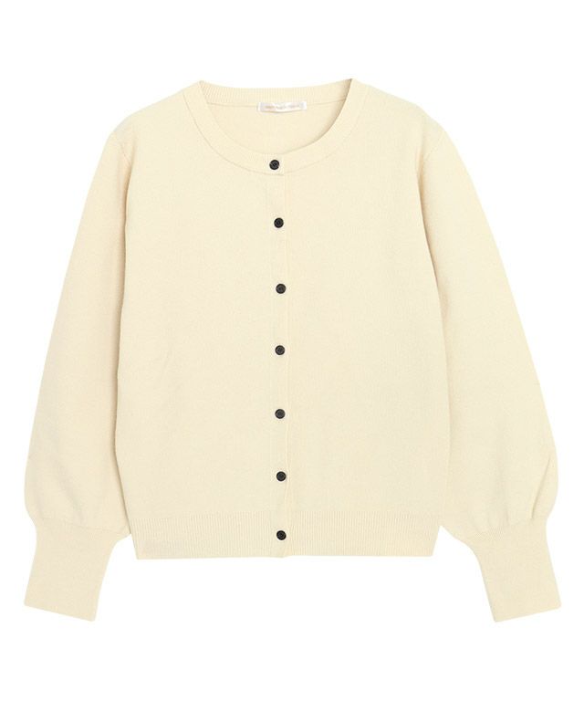 ボリュームスリーブと長めの袖リブに、ブラックボタンがスタイリングに程良いアクセントをプラスします。カーディガンとしてはもちろん短めの丈感に仕上げているのでトップス風としての着こなしも◎トレンドライクな印象に仕上げてくれる一枚です。