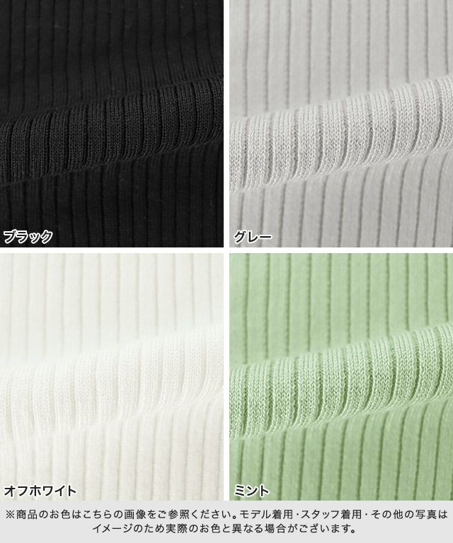 レーヨン混で滑らかな肌触りが魅力的なニット素材。リブ編みが華奢見えし、表情をプラスしてくれます。