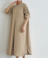 2個ずつ連なったパールボタンが大人可愛いワンピース。きちんと感のあるバンドカラーにふんわりしたボリュームスリーブで優しい印象に。フロントタック入りで体型カバーにも◎