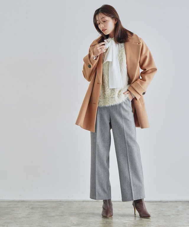 凹凸のある表面感がおしゃれさを高めてくれる素材。程よい厚みのある素材なので、長く着用いただけます。