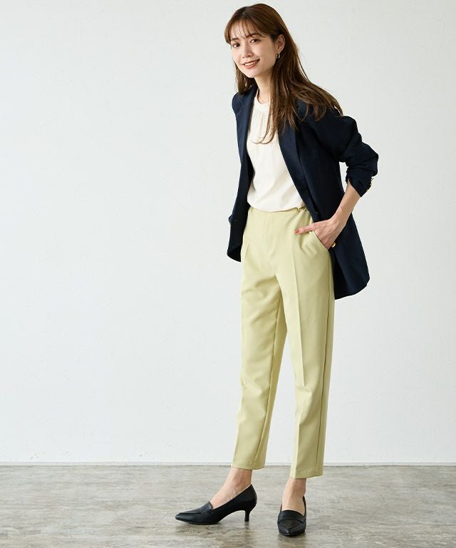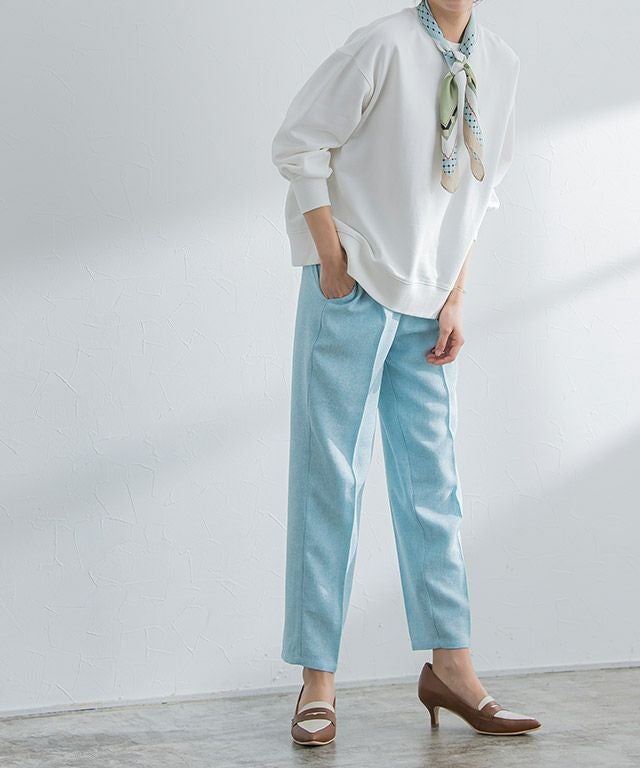 さらりとしたスムース素材が大人な雰囲気に。キャメルは配色にすることでマリンな印象に。