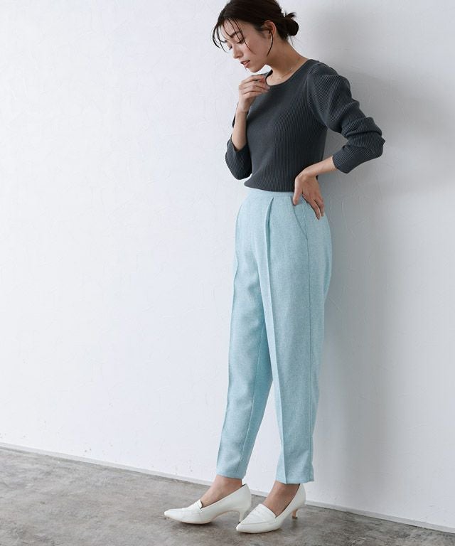 また、ニット製品は生産の過程上「生地を織る際の糸の継ぎ目」繊維の「混紡」、プレス加工、製品洗い加工によって形やサイズ(5cm前後)に誤差が生じる場合がございますが品質上の問題はございません。
