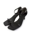 可能な限り、華奢なストラップにすることで女性らしい印象に仕上げた一足。かかとのカッティングが足を綺麗に見せてくれ、スクエアトゥがこなれ感のある印象に導きます。