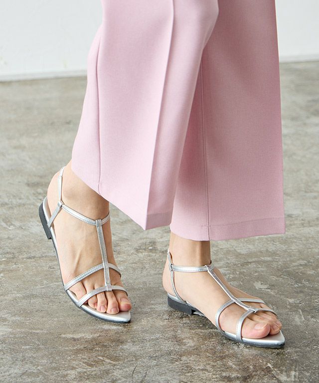 抜け感を演出する“ストラップフラットサンダル”