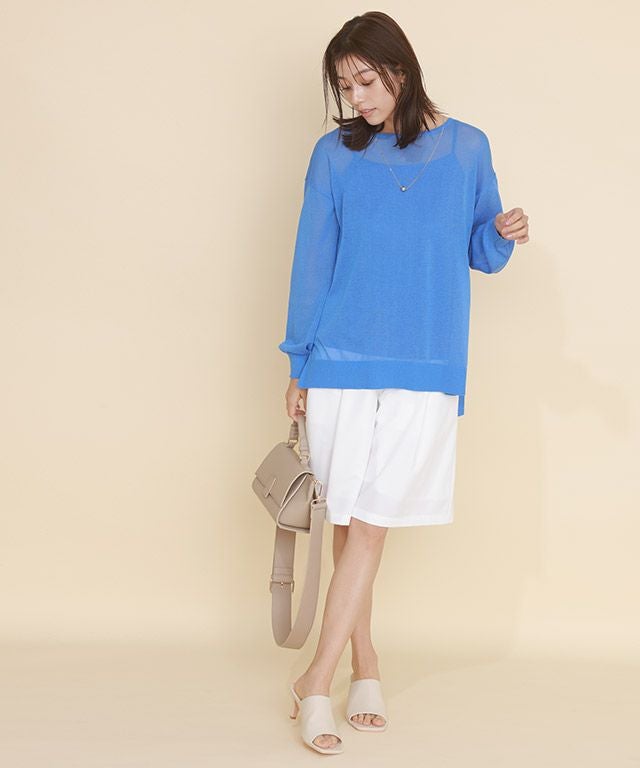 また、ニット製品は生産の過程上「生地を織る際の糸の継ぎ目」繊維の「混紡」、プレス加工、製品洗い加工によって形やサイズ(5cm前後)に誤差が生じる場合がございますが品質上の問題はございません。