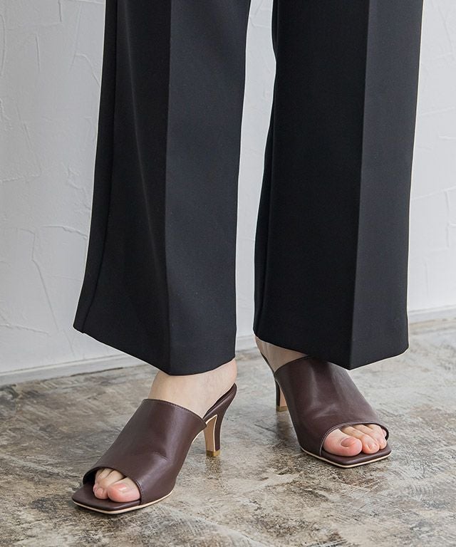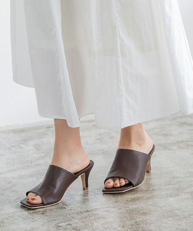 シンプルながらもこなれ感のある“スクエアトゥミュールサンダル”