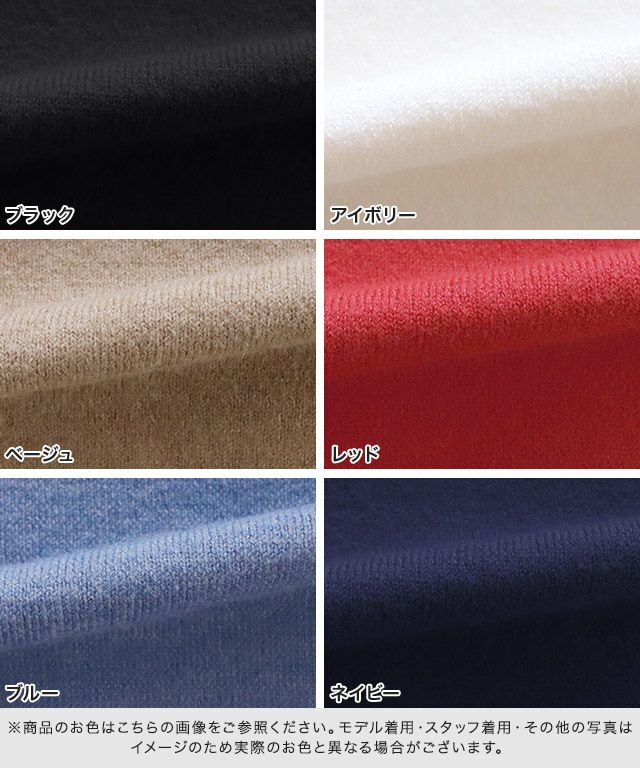 また、ニット製品は生産の過程上「生地を織る際の糸の継ぎ目」繊維の「混紡」、プレス加工、製品洗い加工によって形やサイズ(5cm前後)に誤差が生じる場合がございますが品質上の問題はございません。