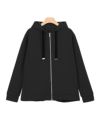 バックスタイルに施したフレアデザインが、バックスタイルにアクセントをプラス。シンプルなコーディネートにさっと羽織るだけでサマ見えします。グログランのリボンテープが女性らしさを醸し出し、リボン先にプレートを付けることで高見えするパーカーに仕上げました。