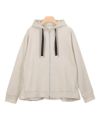 バックスタイルに施したフレアデザインが、バックスタイルにアクセントをプラス。シンプルなコーディネートにさっと羽織るだけでサマ見えします。グログランのリボンテープが女性らしさを醸し出し、リボン先にプレートを付けることで高見えするパーカーに仕上げました。