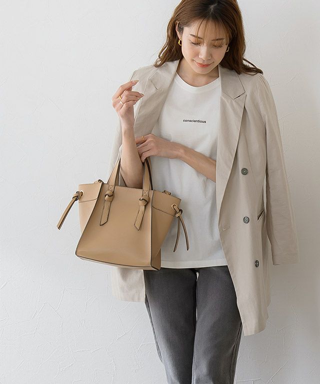 conscientiousは”誠実”の意味。カジュアルながらもさらっとした表情から、スタイリングを大人っぽく仕上げます。