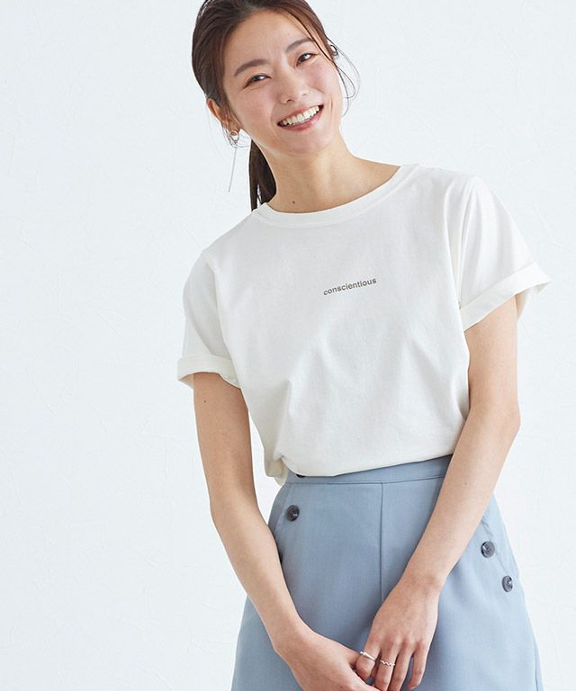 大人カジュアルに決まる“conscientiousシルケットロゴTシャツ”