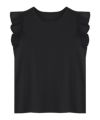 肩に施されたフリルがフェミニンなアクセントをプラス。程よいフリルの存在感が、シンプルながらもスタイリング全体に華やかさを与えてくれる一枚です。