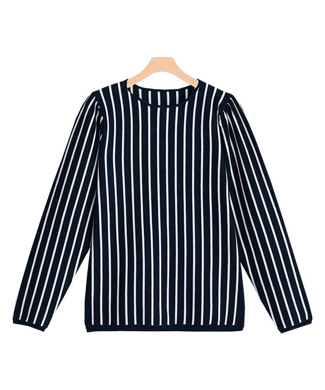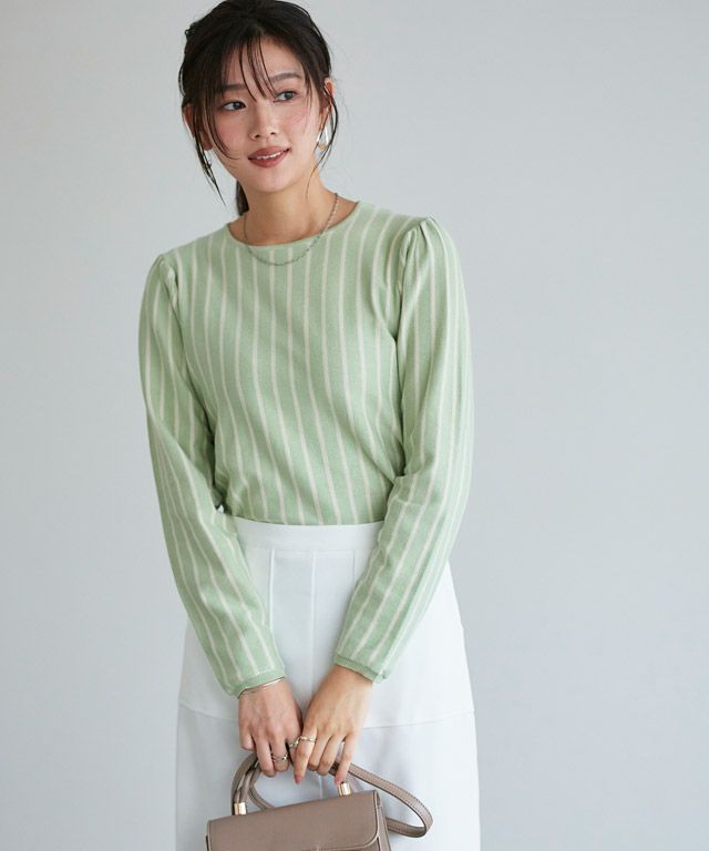 ON/OFF着回し叶えるストライプ柄“シルクタッチストライプニットプルオーバー”