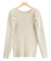 肩に施されたタックでボリューム感を出し、コーデにアクセントをプラス。首元のボタンでこなれ感のある雰囲気に導きます。こだわりのディテールが詰まった一枚で着映えるデザインニットです。