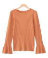 リブ編みにシンプルなクルーネックデザインでボトムスを選ばず、どんなアイテムともマッチするリブニット。フレアスリーブが女性らしく、スタイリングの程良いアクセントに◎