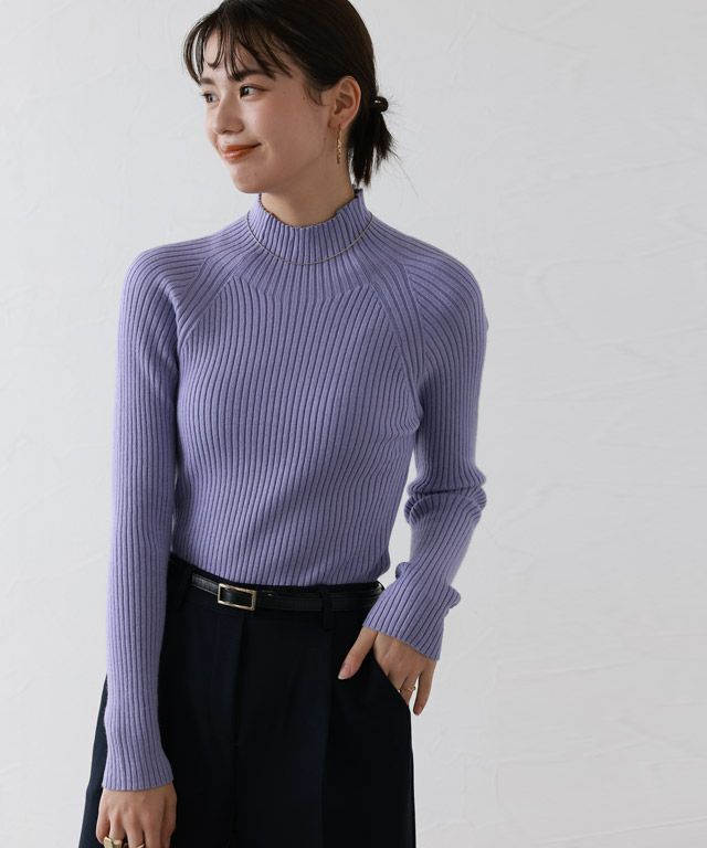 ストレッチリブハイネックニット【スピード配送】