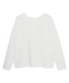UネックとVネックの前後2wayデザインで気分に合わせて着こなしを変えられます。身幅にゆとりのあるリラクシーなシルエットが楽な着心地です。シンプルなデザインでデイリーな着回しにも活躍する一枚です。