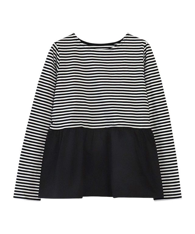 フェミニンで女性らしさ漂う“異素材ドッキングフリルギャザーカットソー”