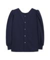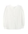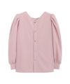ボタンデザインがメインながらも、後ろでも着用できるように襟口にギャザーを施し、前後で楽しめるデザインです。