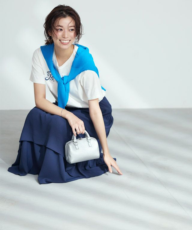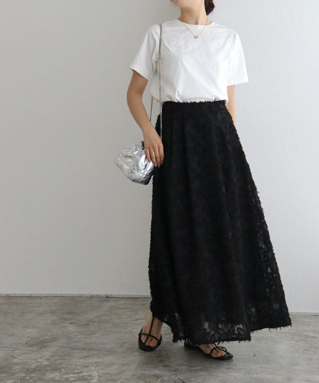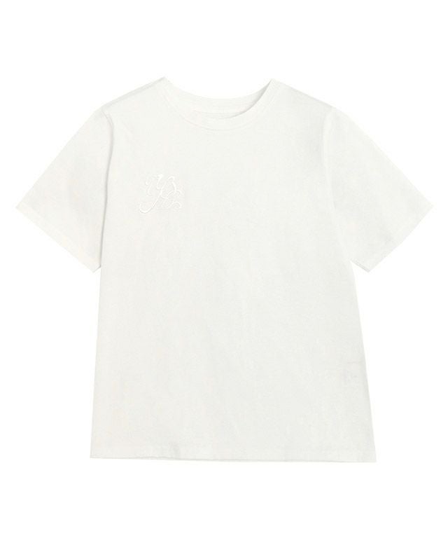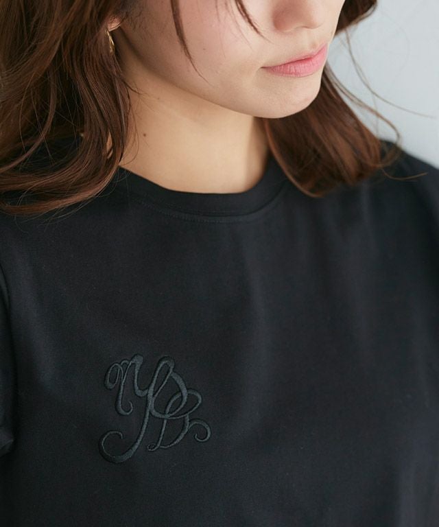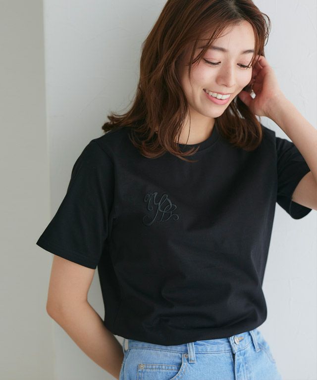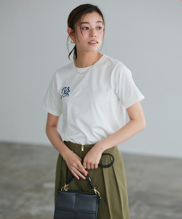 オリジナルの刺繍を施した立体的なデザインTシャツは、スタイリングにさりげなくアクセントをプラスしてくれる一枚。デザインはブランド名の各頭文字を採用しており、女性らしい印象で丸みのある字体で展開しました。程良くゆとりのあるシルエットが、体型カバーを叶えてくれるのも嬉しいポイント。