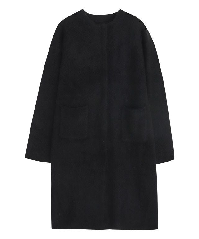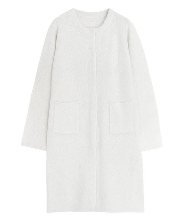 ヒップまですっぽりとカバーしてくれる丈感と、程よく厚みのある風合いが肌寒い時期にぴったりのアイテム。クルーネックでカジュアルな雰囲気に導きます。シンプルでさらっと羽織りやすいデザインながら、比翼仕立てで前を閉じたときにもすっきりとした印象に仕上げました。
