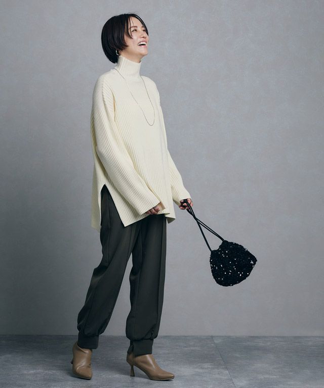 たっぷりと分量をとったワイドなシルエットが大人のこなれ感溢れるデザイン。ゆったりとしたサイズ感は体のラインを拾わずに着用頂けます。サイドスリットが抜け感のあるリラクシーな印象に導きます。