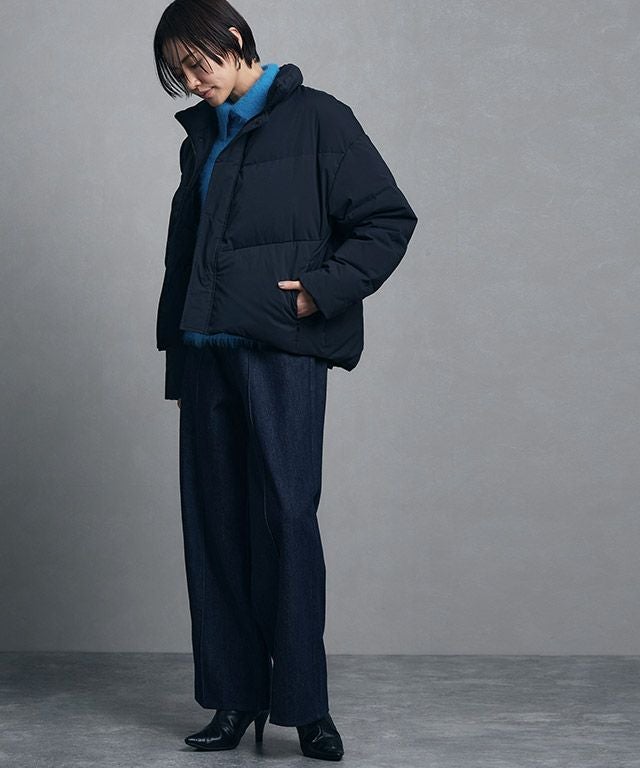 大きい襟が顔周りを華やかに見せてくれるデザイン。クロップド丈でコンパクトな印象ながらワイドスリーブでゆるっとした抜け感をつくり、バランスの良いスタイリングに導きます。