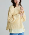 リボンのような糸が表情のあるニット。シンプルなコーディネートも華やかに仕上げてくれます。