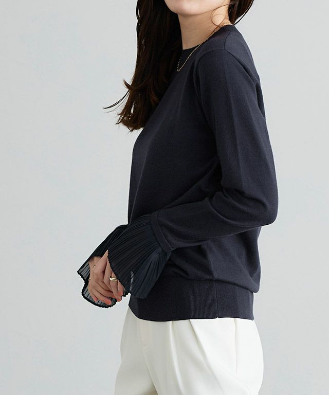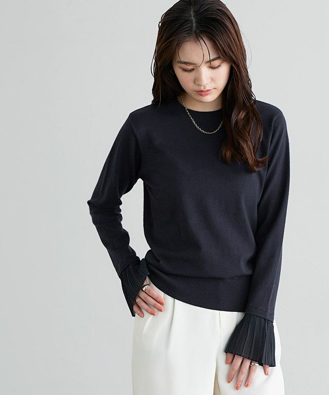 女性らしさ引き立つ“袖プリーツニット”