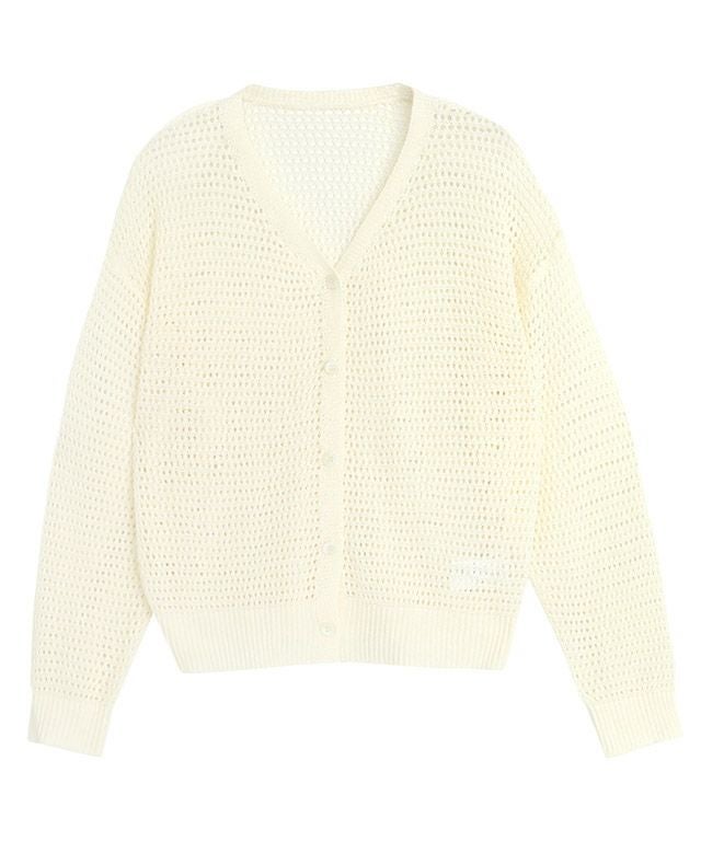 旬コーデに仕上がる“透かし編みカーディガン”