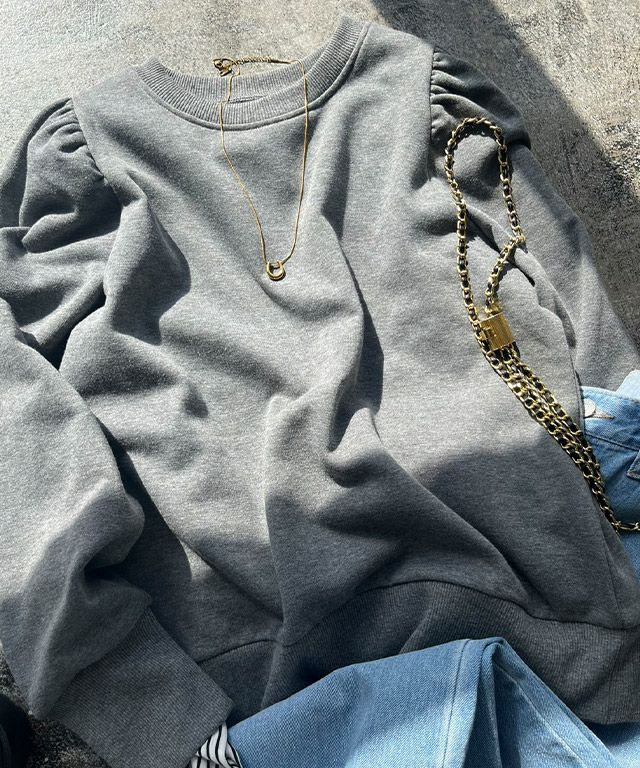 女性らしいアクセントをプラス“裏起毛パフスリーブプルオーバー”