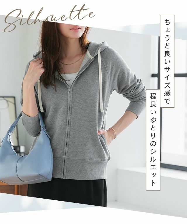 フィットしすぎずオーバーサイズすぎない、程良くゆとりのあるシルエット。袖口と裾はリブ素材でメリハリをプラスしました。被ることのできる大きめのフードが小顔効果も◎Tシャツなどの羽織りとしてはもちろん、ジャケットなどのアウターを上から羽織ることもでき、ON/OFF着回せる万能パーカーです。