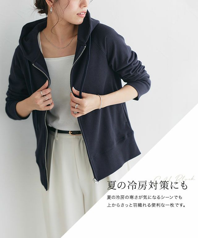 上品にも着回せる大人定番“UVカットスウェットジップパーカー”