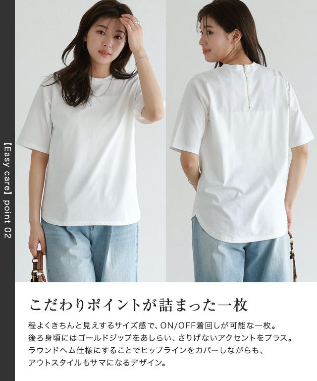 ひとクセ効いたベーシックアイテム“【イージーケア】バックジップデザインTシャツ”
