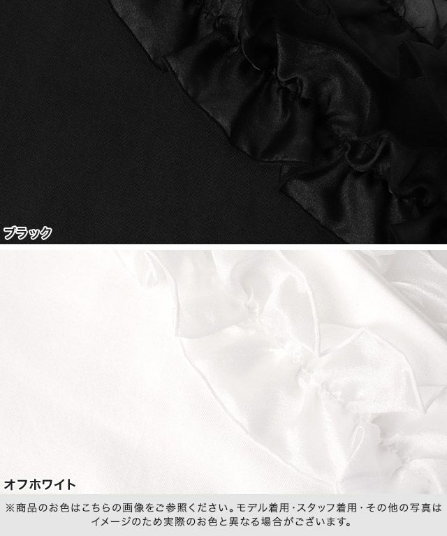 一枚で華やか見え“シアーフリルドッキングカットソー”