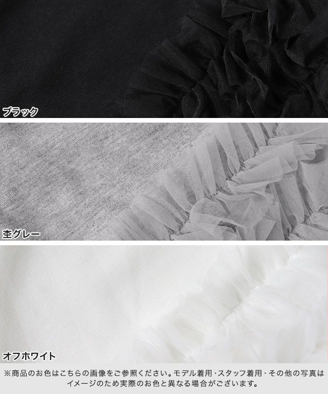 ほんのりとしたボリュームのチュールスリーブが、気になる二の腕をカバーしながら女性らしい印象に導いてくれます。デニムでカジュアルに、スラックスでオフィスカジュアルにもお召しいただけます。インでもアウトでもバランスよく決まる丈感で、毎日のコーデに取り入れやすい一枚です。