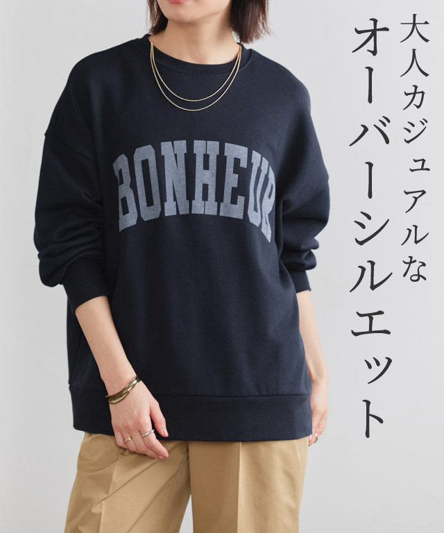 大人のこなれカジュアルを演出“オーバーサイズロゴスウェット”