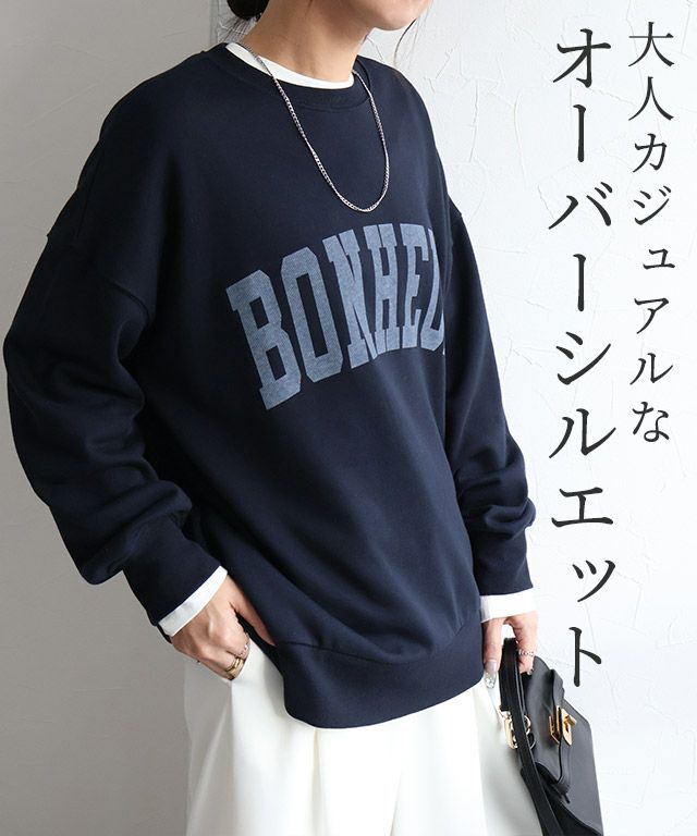 大人のこなれカジュアルを演出“オーバーサイズロゴスウェット”