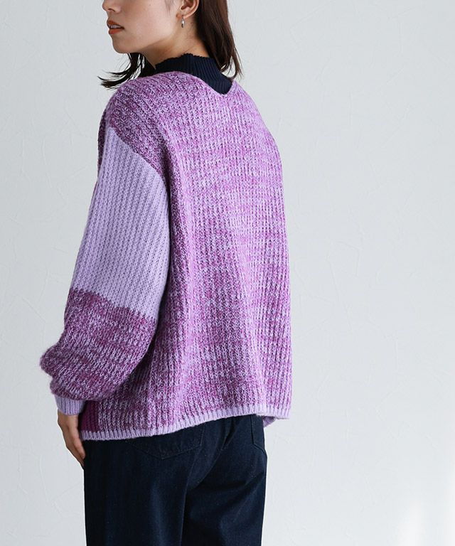 温かみのあるふんわり柔らかで軽い着心地のニット素材。起毛のある糸を編み立ててできるボリューム感も魅力です。