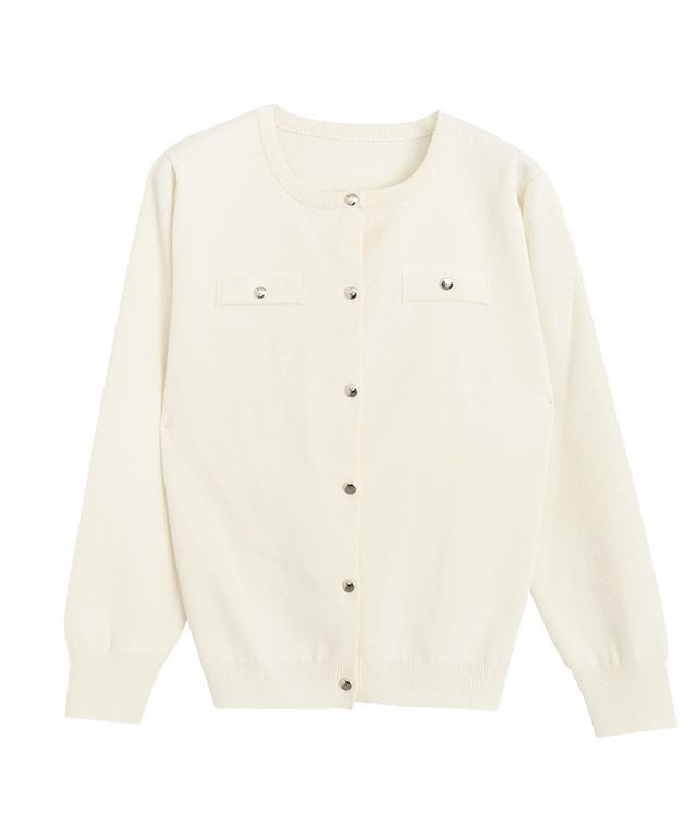 旬のスタイルをつくる“スポンジニットゴールドボタンカーディガン”