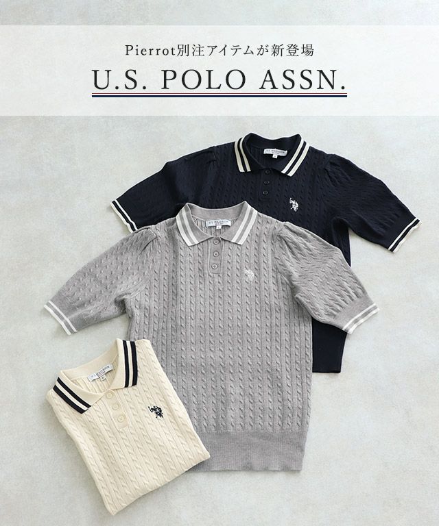 【U.S.POLO ASSN.】配色デザインポロニット【Pierrot】