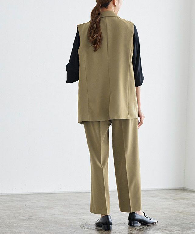 シンプルで高見えのテーラードジレです。ブローチを付けて自分なりのファッションを楽しめます♪