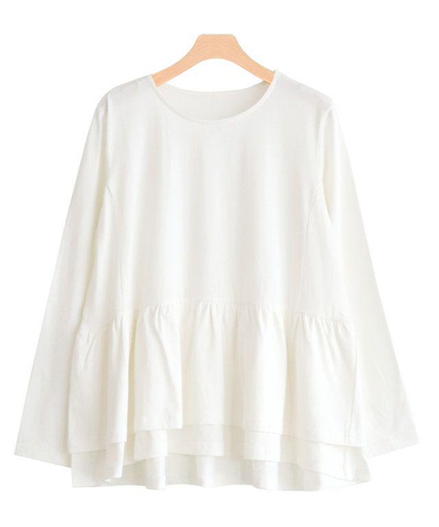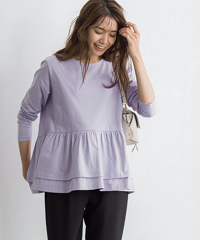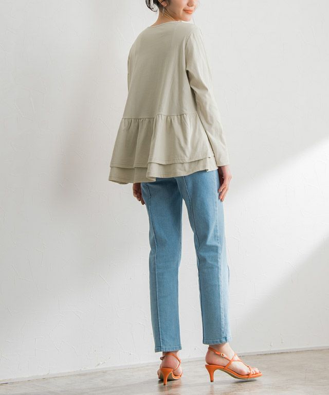 ウエストから広がるフリルデザインがフェミニンな印象の一枚。腰回りの体型カバーにもなる優秀デザインです。シンプルにパンツやスカートと合わせてもサマ見えするアイテムです。