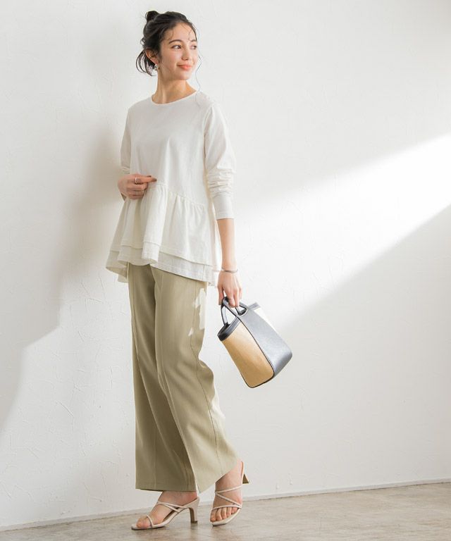 大人フェミニンスタイルに“フリルデザインTシャツ”