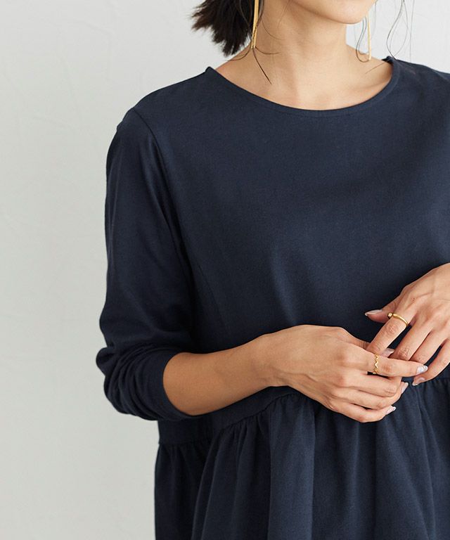柔らかく、滑らかな肌触りの綿100%生地なので、着るだけでぐっと大人な雰囲気に。程良くしっかりとした質感の薄すぎず厚すぎない生地は、デイリー使いに最適です。