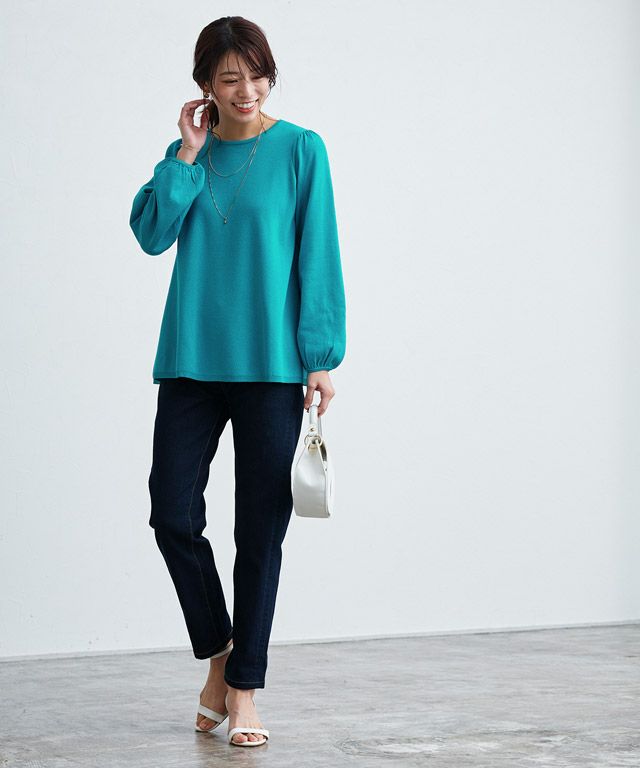 こだわり素材が魅力“パフボリュームスリーブフレアニット”